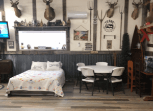 Layout: Comes furnished with a small fridge, microwave, crock pot, toaster oven and all cooking utensils, small grill, AC window unit for those warm nights and a space heater for those colder nights. It sleeps up to 3 guests. It comes with a futon and a twin bed.